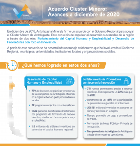 Desde su firma, en diciembre de 2018, esta alianza ha trabajado en la ejecución de acciones concretas para el desarrollo de dos pilares estratégicos del Clúster: “Formación de Capital Humano y Empleabilidad†y “Desarrollo de Proveedores con foco en innovaciónâ€.