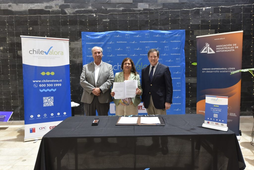 La Asociación de Industriales de Antofagasta (AIA) y la Comisión del Sistema Nacional de Certificación de Competencias Laborales, ChileValora, reafirmaron su compromiso a través de la firma de un convenio estratégico, con miras al reforzamiento de los aprendizajes y competencias en la formación profesional de las futuras generaciones.