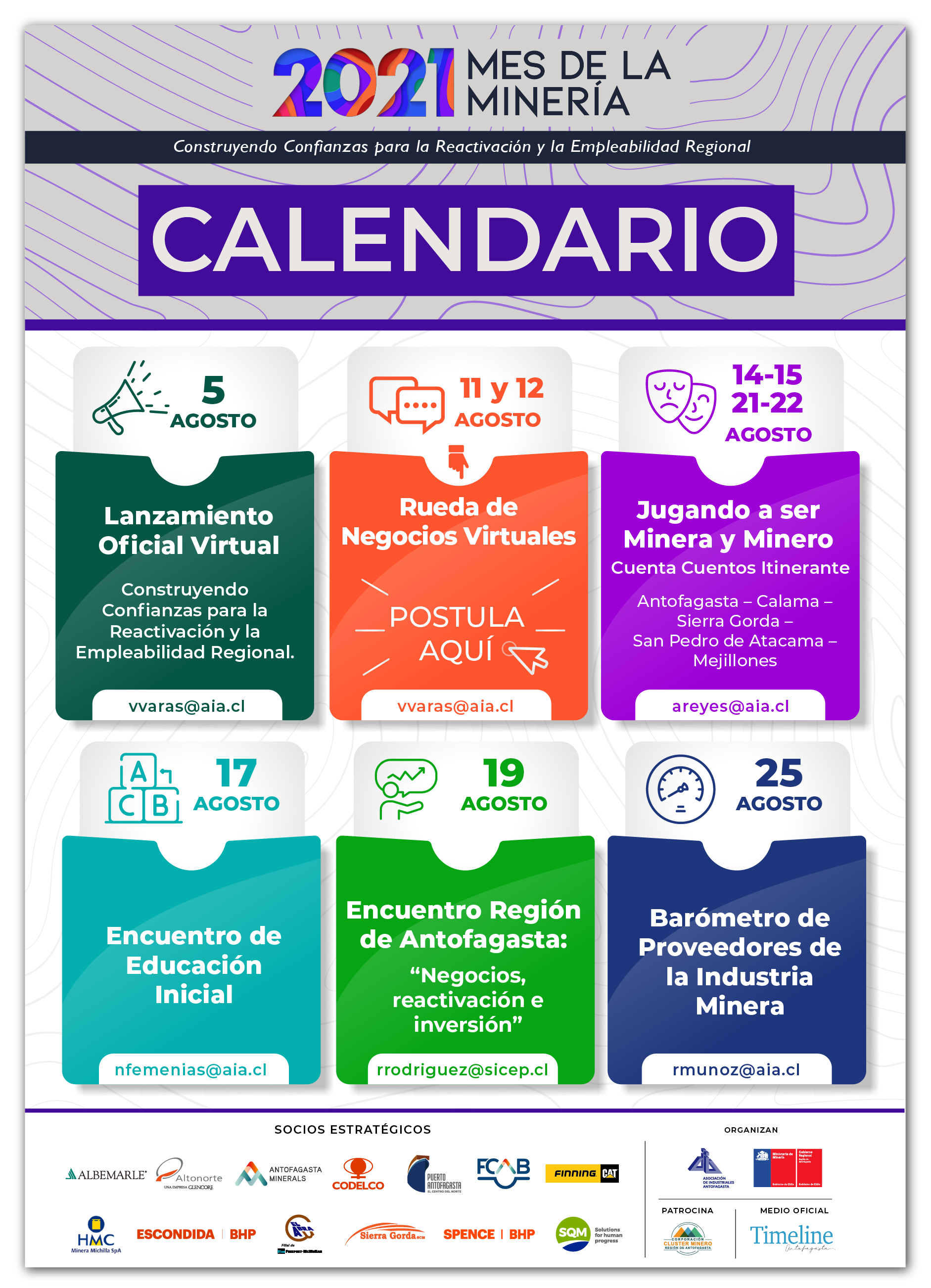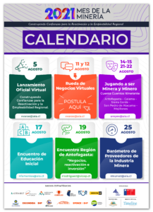 El cronograma de actividades prepara un encuentro sobre inversión de la industria minera; una rueda de negocios virtual; un programa comunitario infantil itinerante; un seminario de educación inicial; y la presentación de un barómetro de proveedores de la industria minera.