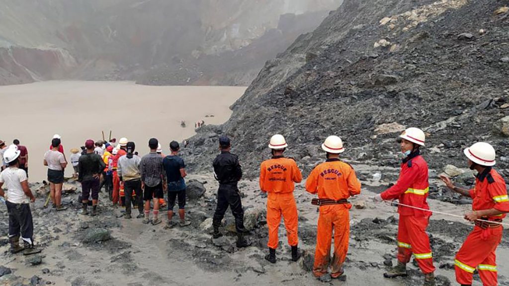 El suceso ocurrió cuando los mineros estaban extrayendo jade de las laderas excavadas en una mina de Hpakant, una remota localidad situada en el estado Kachin, afirmó el departamento de Bomberos birmano en su página de Facebook.