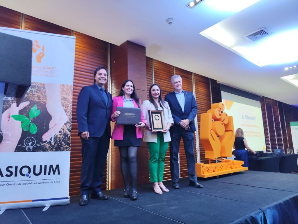 El reconocimiento fue otorgado por la Asociación de Industriales Químicos de Chile (Asiquim), entidad que administra en el país esta iniciativa global de la industria química.
