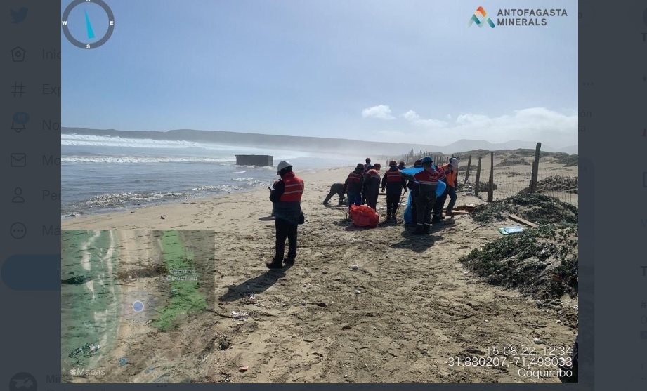 Antofagasta Minerals informó que debido a las fuertes marejadas que se registraron el lunes, una plataforma marítima utilizada por la constructora Belfi en la construcción de la Planta Desalinizadora de Minera Los Pelambres, fue desplazada hasta la orilla de la Playa Amarilla, comuna de Los Vilos.