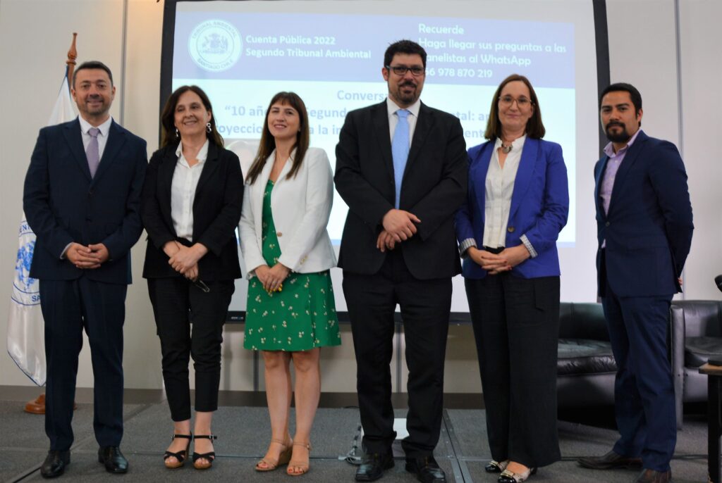 El Segundo Tribunal Ambiental organizó un conversatorio en el marco de la presentación de su Cuenta Pública 2022, instancia que contó con la participación de la superintendenta del Medio Ambiente, Marie Claude Plumer Bodin; la directora ejecutiva del Servicio de Evaluación Ambiental (SEA), Valentina Durán Medina; y el jefe de la División Jurídica del Ministerio del Medio Ambiente (MMA), Ariel Espinoza.