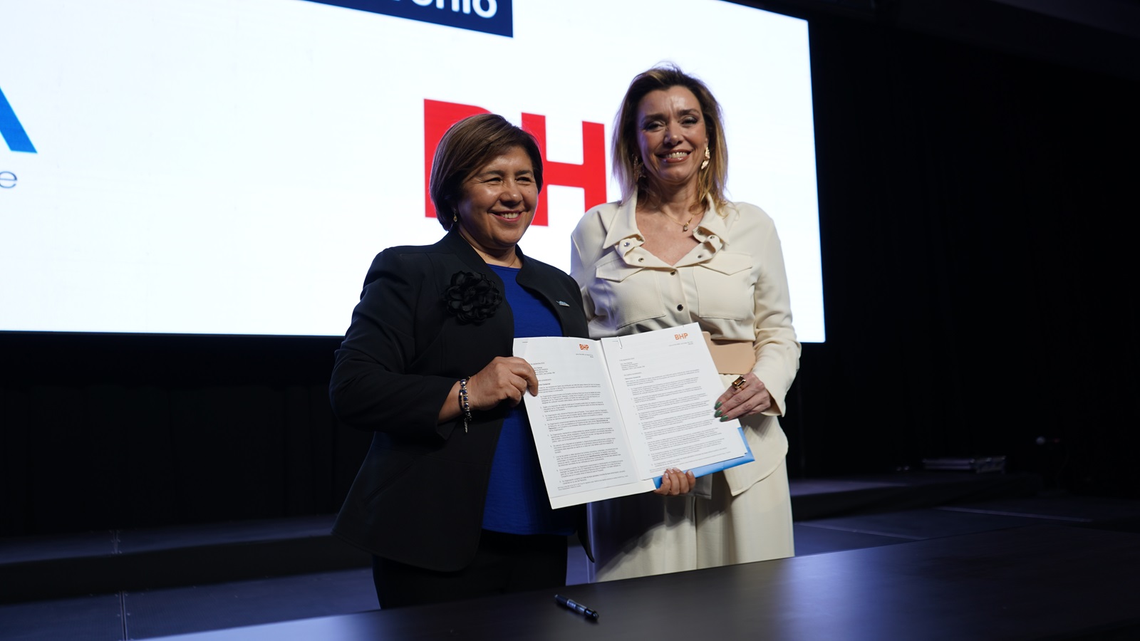 Con la firma de la presidenta de Women in Mining Chile (WIM), Ana Salazar, y la Head de Asuntos Corporativos y Comunicaciones de BHP, Ximena Ossa, ambas organizaciones sellaron el ingreso oficial de BHP a WIM.