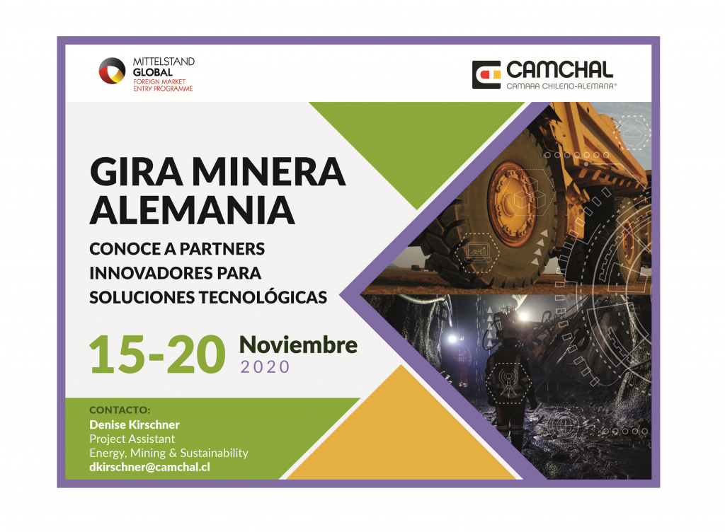 Una gira a Alemania para conocer en terreno cómo la industria minera se adapta al período post Covid-19, es lo que impulsa CAMCHAL, Cámara Chileno-Alemana de Comercio e Industria. La instancia está dirigida a líderes del rubro que buscan conocer el despliegue de este sector en el país germano tras la pandemia sanitaria y cómo la tecnología 4.0 ha resultado clave para la reactivación.