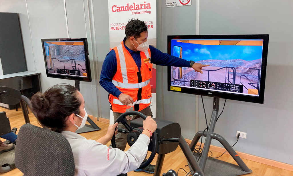 Minera Candelaria está desarrollando el “Programa Formación de Mujeres Aprendicesâ€, donde 40 futuras operadoras participan del entrenamiento -teórico y práctico- en simuladores de alta tecnología y en los propios camiones de extracción.