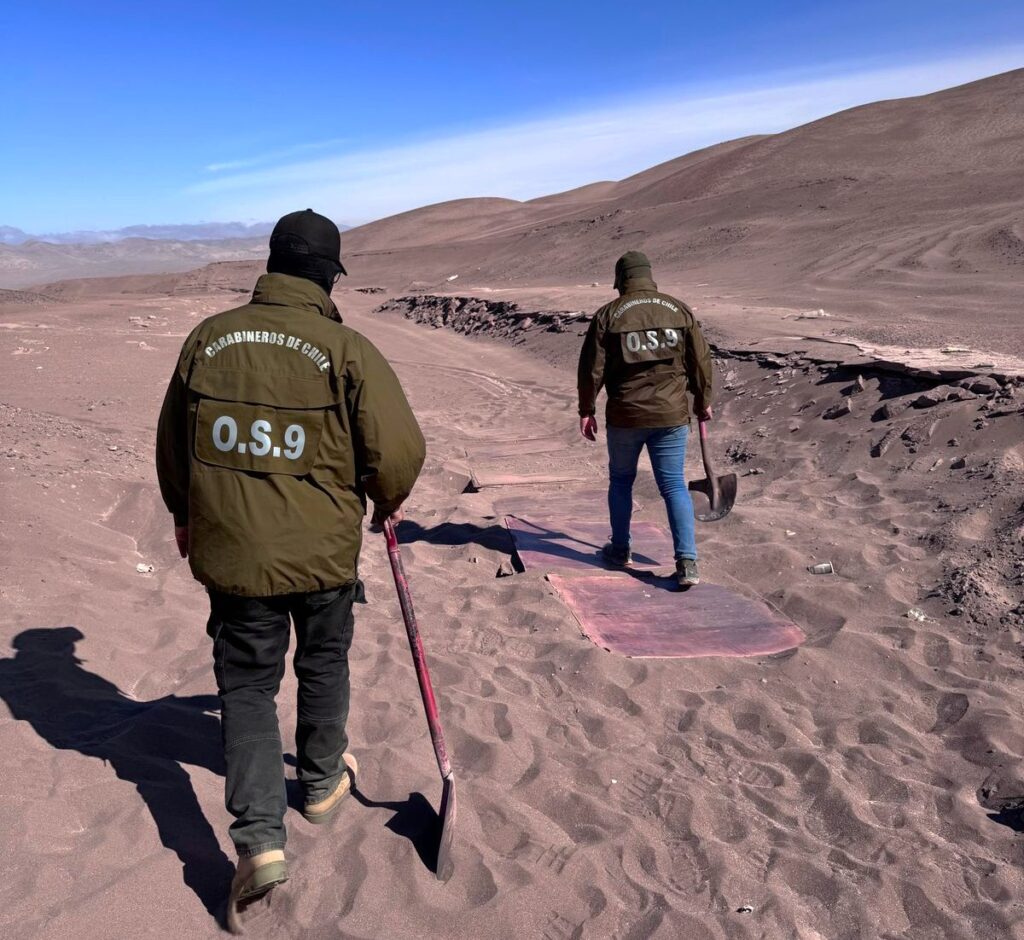 Personal de la Sección OS9 de Carabineros de Antofagasta logró la recuperación de más de 100 láminas de cobre que estaban enterradas en medio del desierto, luego de ser sustraídas desde un tren en movimiento que se dirigía hacia Mejillones.