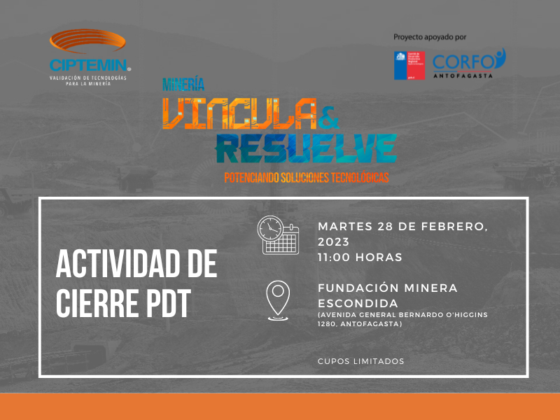 La actividad de cierre del Programa de Desarrollo Tecnológico Minería – Vincula y Resuelve, se desarrollará en  Avenida General Bernardo O’Higgins 1280, Antofagasta, Chile