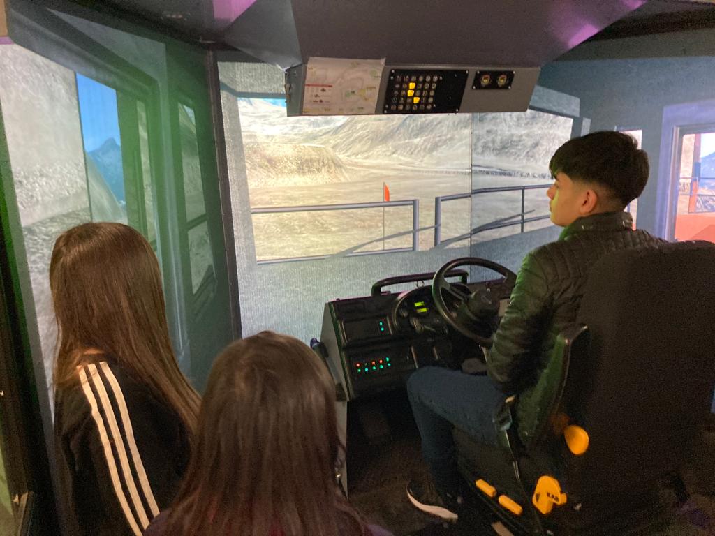 Uno de los momentos más destacados por los estudiantes ha sido la experiencia de maniobrar el simulador utilizado en el entrenamiento de los futuros operadores de Camiones de Extracción (CAEX) de alto tonelaje. Los alumnos/as han tenido la oportunidad de experimentar el manejo de este equipo y comprender la labor que desempeñan los operadores en la industria minera.