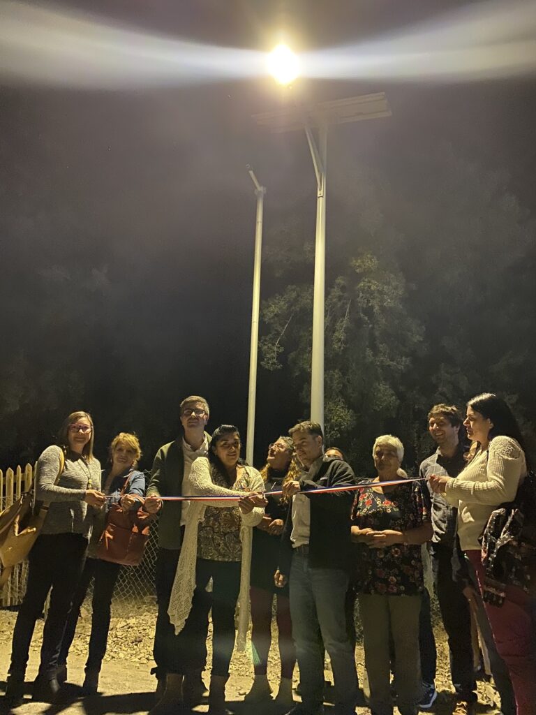 Vecinas y vecinos del Camino Internacional, participaron de un simbólico corte de cinta que dio oficialmente por inaugurado un proyecto que hoy les permite contar con 105 nuevas luminarias LED en sectores claves de sus localidades.