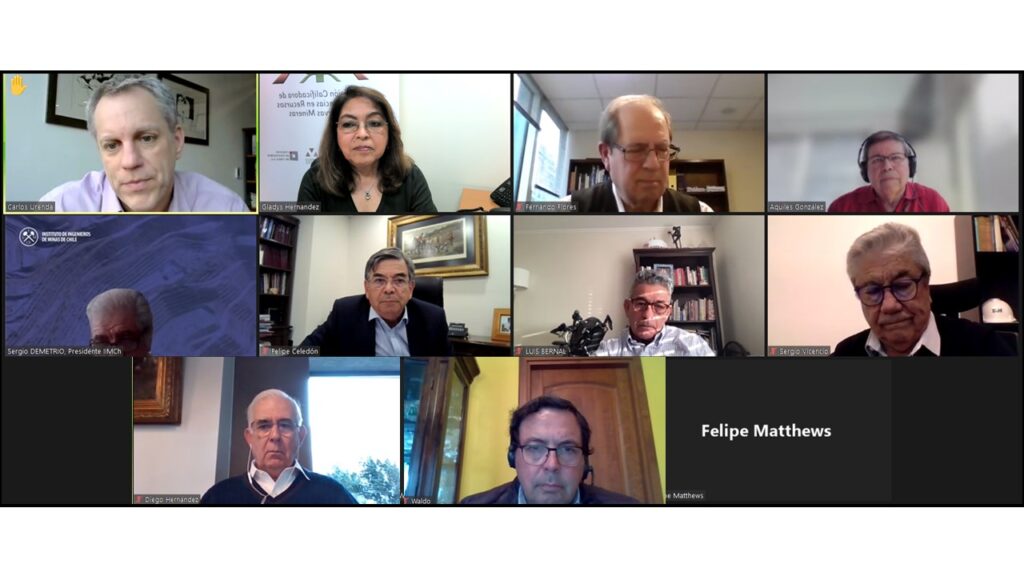 El presidente de la Comisión Minera, Aquiles González, dio la bienvenida a los participantes: Diego Hernández y Felipe Celedón de Sonami; Carlos Urenda, del Consejo Minero; Sergio Vicencio y Felipe Mattheus del Colegio de Geólogos; y Sergio Demetrio en representación del Instituto de Ingenieros de Minas de Chile (IIMCh) y del Colegio de Ingenieros.