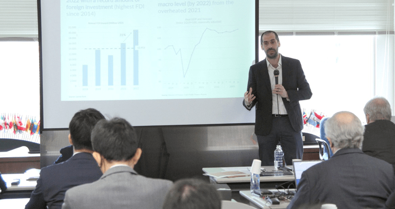 Sobre las actividades en el paÃs, el representante del BID en Japón, Hideharu Tanaka, comentó que la presencia de la delegación chilena fue sumamente atractiva para los inversionistas y compañÃas locales. “Vemos a Chile como un ‘buen vecino’ a través del Océano PacÃfico, que cuenta con un gran potencial en energÃas renovables, litio, hidrógeno verde y otros sectores. Como BID estamos también comprometidos en promover que las Startups de Japón y Chile trabajen en conjunto. En suma, vemos un gran potencial en la cooperación entre ambos paÃsesâ€, expresó.