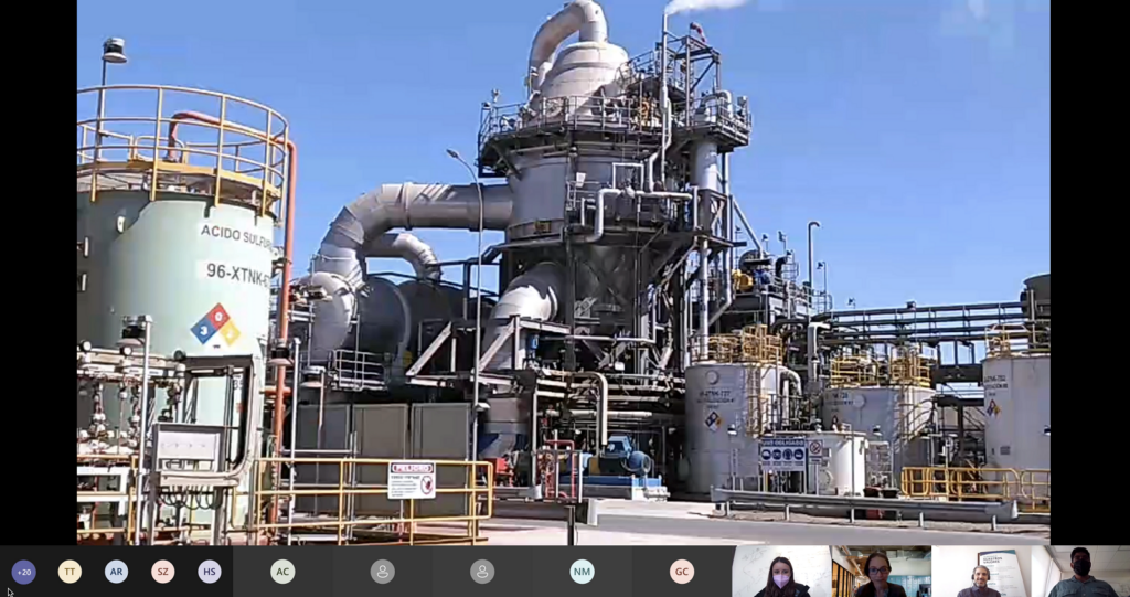 Luego se hizo la visita virtual a distintos sectores de la planta, lo que se realizó utilizando los cascos inteligentes con que cuenta Albemarle en sus operaciones en Chile, tecnología que funciona por comandos de voz y con tienen una pantalla frontal que permite visualizar en terreno las instalaciones, con alta calidad y con la posibilidad de transmitir a cualquier parte del mundo.