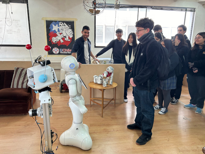 Posteriormente, visitaron el Laboratorio de Robótica, donde el investigador Pablo Alfessi les presentó los robots que se han desarrollado dentro de las instalaciones del Centro. Uno de los grandes hitos de la visita fue cuando las y los alumnos tuvieron la oportunidad de interactuar con Maqui, robot del AMTC capaz de comunicarse con las personas mediante inteligencia artificial.