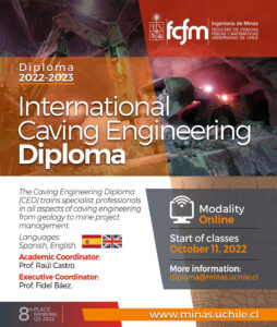 El Departamento de Ingeniería de Minas de la Universidad de Chile inició el proceso de postulaciones a los y las profesionales interesados/as en cursar el International Caving-Engineering Diploma (CED), período 2022– 2023, séptima generación.