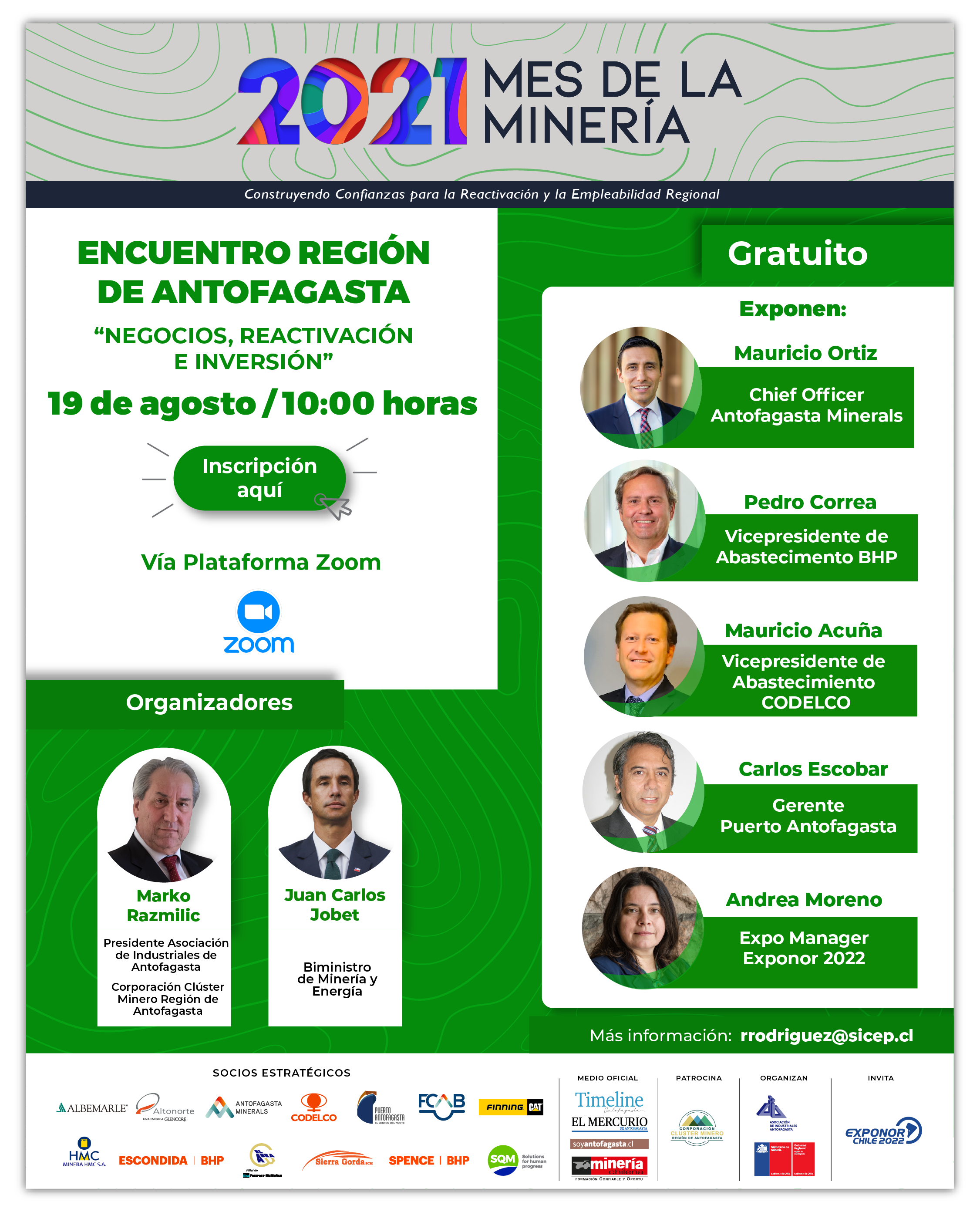 Para participar del evento es necesario inscribirse aquí. Para mayor información el público interesado puede escribir a rrodrigiez@sicep.clÂ