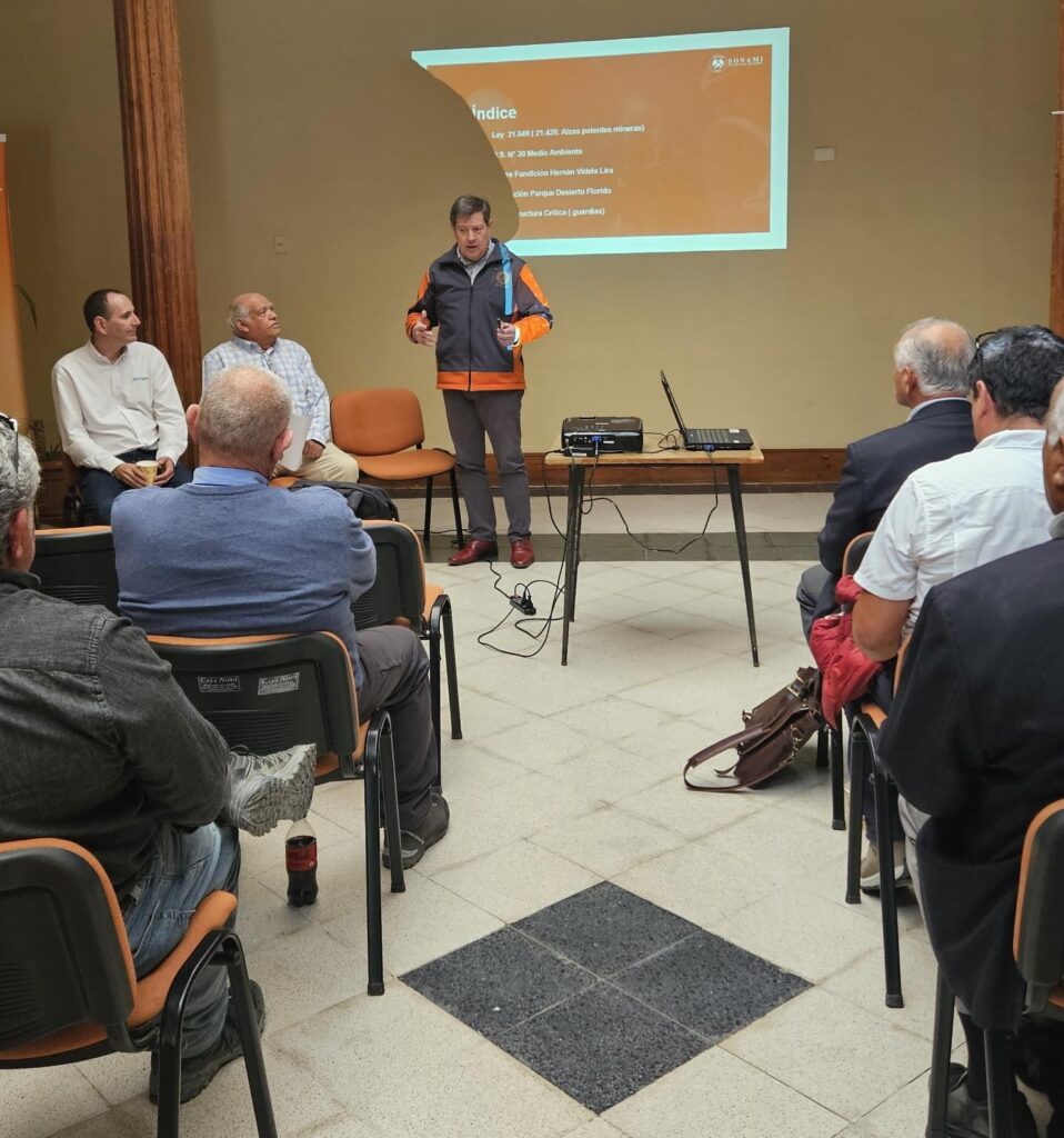 Dicha actividad se desarrolló en dependencias de la Asomico, (Asociación Minera de Copiapó), ocasión en que se analizaron y debatieron diversos temas de interés para el gremio tales como la Ley 21649 (21.420 Alza de patentes mineras), el D. S. N°30 sobre Medio Ambiente, el cierre de Fundición Hernán Videla Lira, la Afectación parque Desierto Florido y el proyecto de Infraestructura Crítica.
