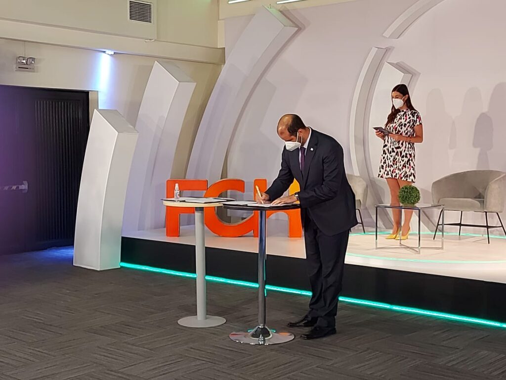 La firma del Acuerdo voluntario contó con la participación de Javier Naranjo, subsecretario de Medio Ambiente, del vicepresidente de Corfo, Pablo Terrazas, del embajador de Suiza, Arno Wiki; del director ejecutivo de la Agencia de Sustentabilidad y Cambio Climático, Giovanni Calderón; del superintendente del Medio Ambiente, Cristóbal de la Maza, del gerente general de Fundación Chile, Marcos Kulka; del presidente de Sociedad Nacional de Agricultura, Ricardo Ariztía; del presidente de Sonami, Diego Hernández, del director general de Prochile, Jorge O´Ryan, y Gonzalo Bachelet, vicepresidente de Chilealimentos.