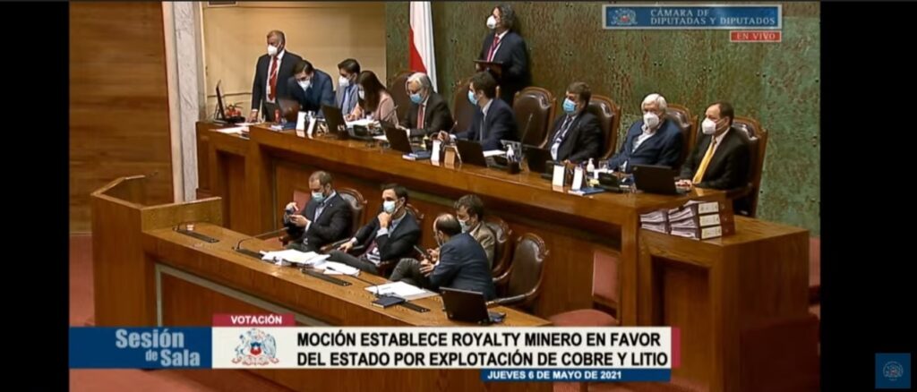 La Cámara de Diputadas y Diputados respaldó y despachó al Senado la moción que establece en favor del Estado una compensación, denominada royalty minero, por la explotación de la minería del cobre y del litio, entre otros minerales.
