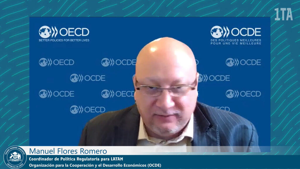 Una charla magistral sobre Gobernanza regulatoria y regulación basada en riesgo dictó, al equipo del Primer Tribunal Ambiental, el especialista en política regulatoria de la Organización para la Cooperación y Desarrollo Económico (OCDE), doctor Manuel Flores Romero.