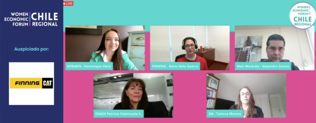 Los panelistas fueron Rocío Niño, vicepresidenta Global DIT&OE Finning; Tatiana Montes, People Relations Leader Cono Sur de 3M; Alejandro Gómez, gerente de Recursos Humanos de Weir Minerals Latam, y Patricia Valenzuela, vicepresidenta corporativa de Recursos Humanos y Sostenibilidad de Enaex.