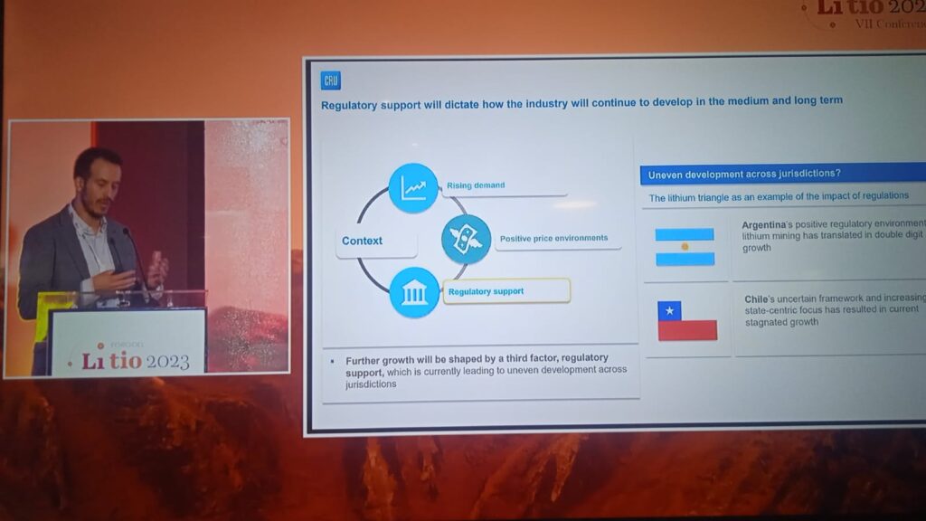 En dicho espacio, Marcelo Bolton, Senior Consultant, Mining & Metals en CRU Strategies Consultores (CRU Group), comentó que Argentina es el tercer país en el mundo con el mayor crecimiento de la producción de litio, sólo detrás de Australia y China.