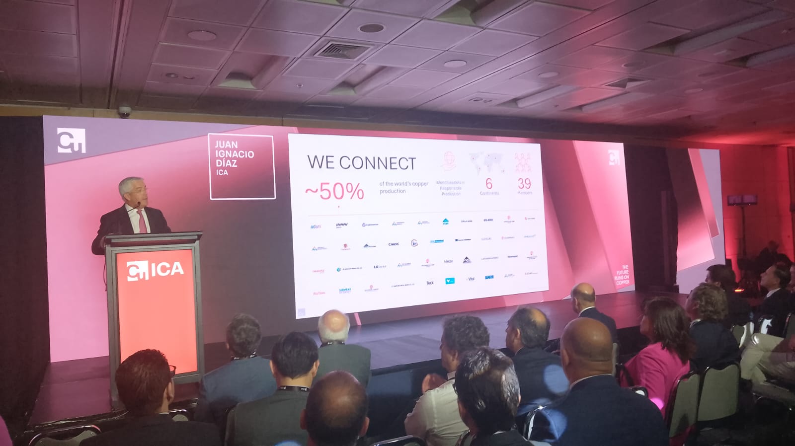 En ese contexto, Juan Ignacio Diaz, presidente de la ICA, explicó que como asociación cuentan con 39 miembros de los seis continentes, que representan alrededor del 50% de la producción mundial de cobre, teniendo como misión promover el cobre, proteger el mercado y la industria, y defender la demanda del metal rojo.