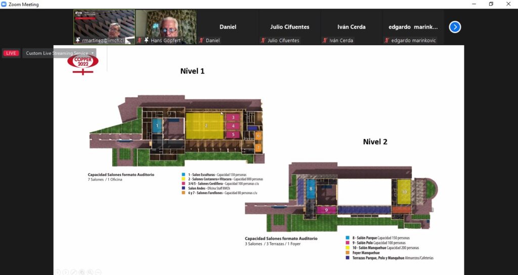 A continuación, Hans Göpfert, Chairman Técnico de la conferencia y socio del Instituto, se refirió a los orígenes de este encuentro internacional, que se configura como el foro técnico más relevante en torno al metal rojo, realizándose hasta ahora de manera presencial, convocando a un promedio de mil asistentes y 300 papers, que serán parte de sesiones plenarias, mesas redondas, charlas técnicas, cursos cortos y visitas técnicas, entre otras actividades, sumado a la realización de una feria de proveedores.
