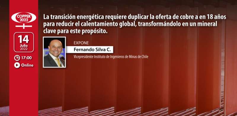 En el marco del ciclo de Jueves Minero Online, el Instituto de Ingenieros de Minas de Chile (IIMCH) preparó una charla sobre la Conferencia Internacional Copper 2022, donde se hondará en la relevancia que la transición energética, que requiere duplicar la oferta de cobre en 18 años para reducir el calentamiento global, transformándolo en un mineral clave para este propósito.