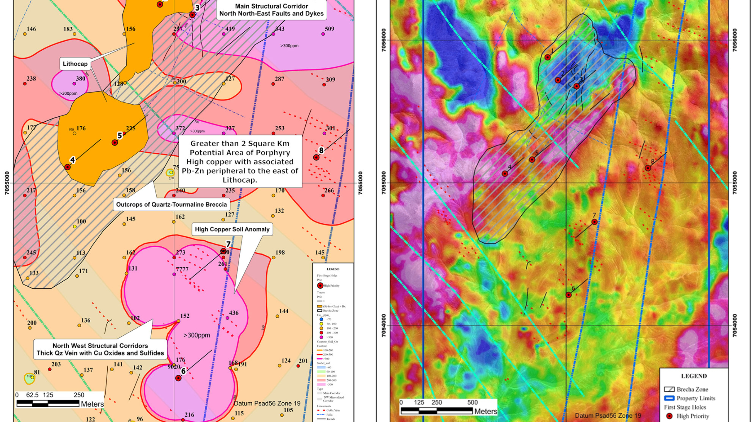 Además, se ha mapeado una amplia zona de brechas con turmalina, un indicador adicional común en sistemas de pórfido de cobre productivos. Estas evidencias refuerzan el potencial del área para albergar un depósito mineralizado de importancia, aseguraron desde la compañÃa.