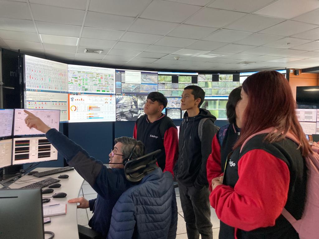 Durante la visita, las y los alumnos tuvieron la oportunidad de conocer y maniobrar un simulador que es utilizado en el entrenamiento que reciben los futuros operadores de Camiones de Extracción de alto tonelaje que ingresan a la División.