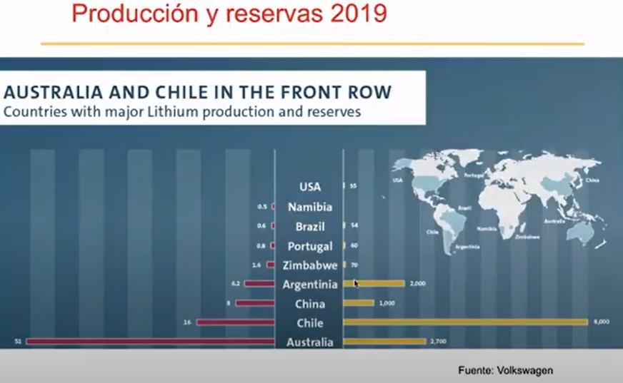 También indicó que, según el Ministerio de Minería, que Chile posee alrededor del 52% de las reservas mundiales, seguido por Australia.