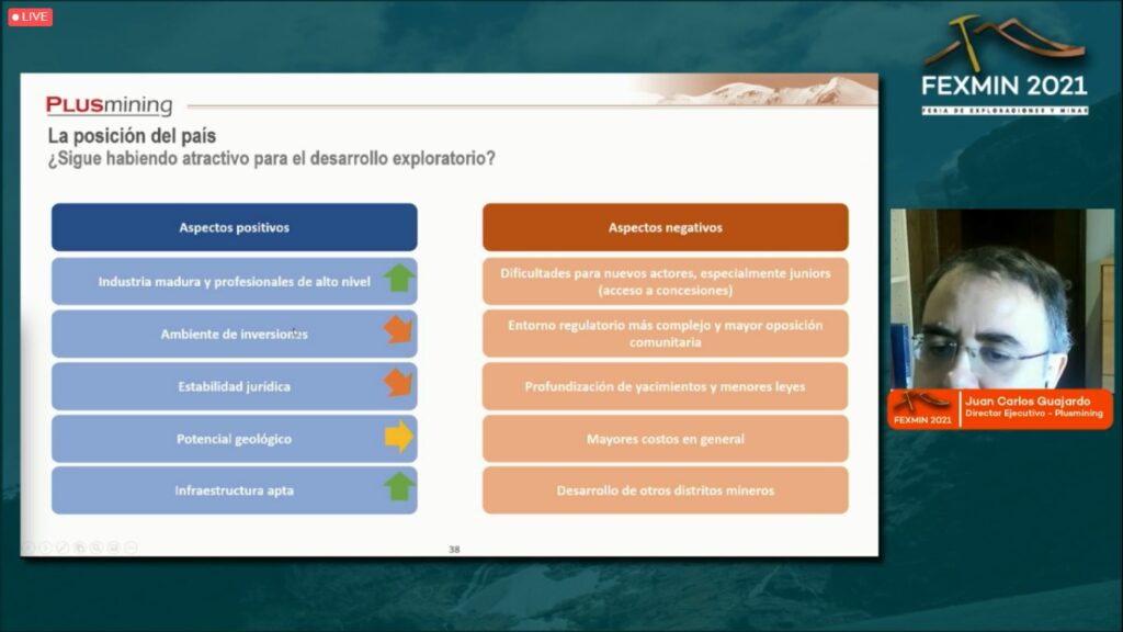 En esa línea, Juan Carlos Guajardo indicó que Chile fue el país con la mayor caída en gastos de exploración en 2020 (-US$196 millones vs 2019). Sin embargo, se mantuvo como el principal destino de América Latina y de exploración de cobre.