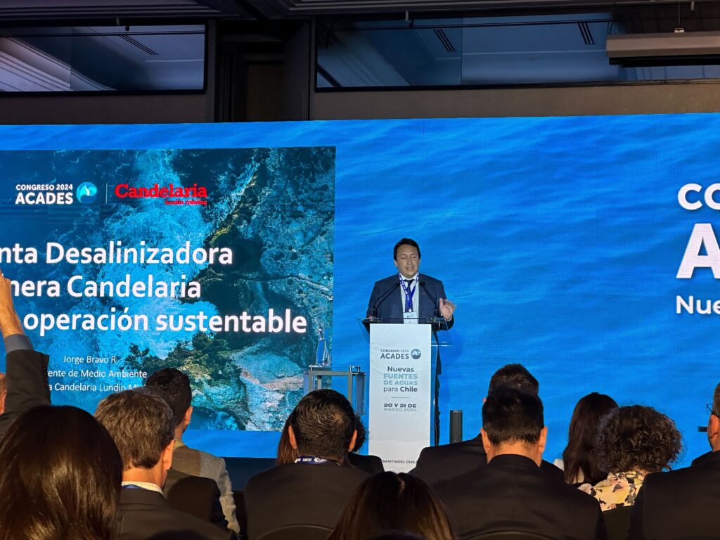 En el marco del Congreso Acades 2024, “Nuevas fuentes de Agua para Chile, que se desarrolla este 20 y 21 de marzo en el Hotel Mandarín Oriental, una de las destacadas exposiciones estuvo a cargo de Jorge Bravo, gerente de Medio Ambiente de Minera Candelaria Lundin Mining, quien en el bloque denominado «Perspectivas de la minería chilena en desalación y reúso», abordó temáticas relacionadas a la gestión del agua en la industria minera chilena y las estrategias para hacer frente a los desafíos ambientales.