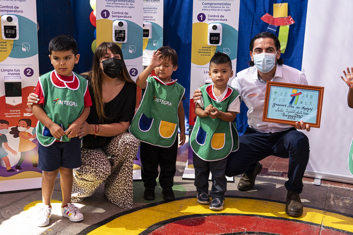En este sentido, la directora Regional de Fundación Integra, María José Montoya, señaló que “hoy estamos recibiendo el aporte de los tótems sanitarios, los cuales serán destinados a cada uno de nuestros jardines infantiles de las nueve comunas de la región, para reforzar los protocolos sanitarios que hemos instalado en nuestras comunidades educativas en estos 2 años de pandemiaâ€.