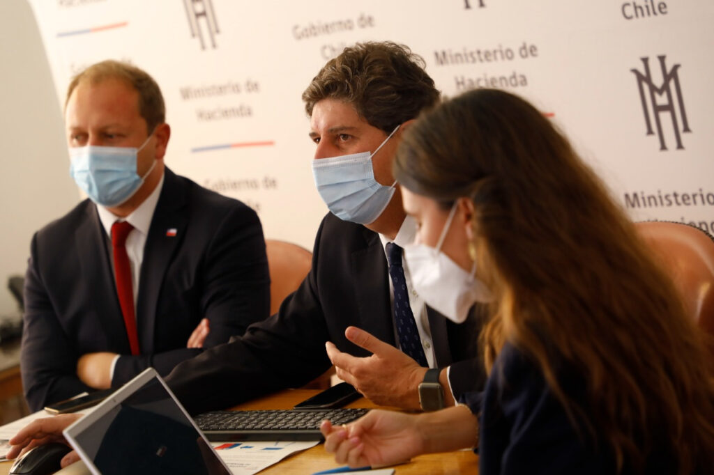 El ministro de Hacienda, Rodrigo Cerda, junto con el subsecretario de la cartera, Alejandro Weber, la directora de Presupuestos, Cristina Torres, y el equipo de la Oficina de Finanzas Verdes —liderado por el coordinador Macroeconómico y de Finanzas Internacionales, Cristóbal Gamboni—, hizo un balance de los principales hitos del Ministerio en materia de medidas financieras para combatir el cambio climático.