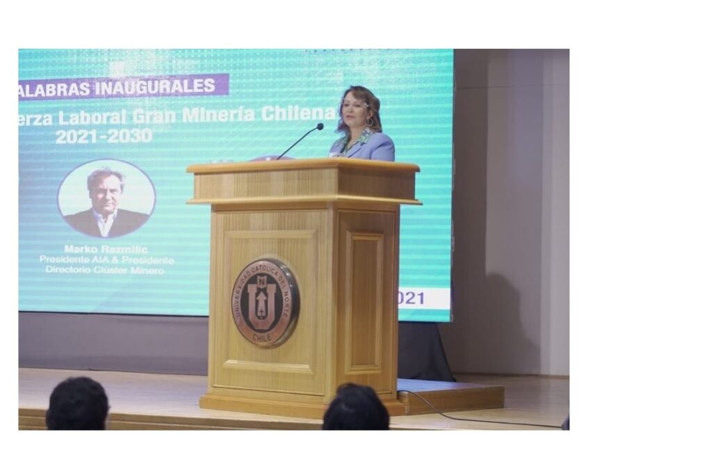 Además, encabezó la presentación del Estudio de Fuerza Laboral de la Gran Minería Chilena 2021-2030, elaborado por el Consejo de Competencias Mineras y Programa Eleva (alianza CCM-Eleva), a partir de la información entregada 14 empresas de la gran minería y 13 empresas proveedoras vinculadas a la cadena de valor principal.