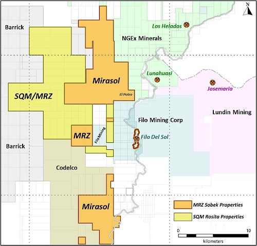 La propiedad de SQM (Rosita) cubre 11.500 hectáreas, posibilitando extender el Proyecto Sobek hacia el oeste y el este, y unificando el bloque Sobek Central con el bloque Sobek Norte, lo que fue un factor importante en esta consolidación. La propiedad combinada ha duplicado la propiedad de Mirasol en el distrito hasta un total de 22.640 hectáreas.