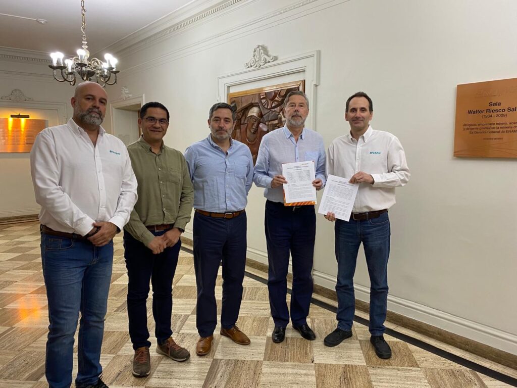 ​Representantes del Sindicato Asociación Nacional de Supervisores (ANSE) y la Empresa Nacional de Minería (Enami) se reunieron para firmar un relevante acuerdo, en el marco de una ceremonia que fue encabezada por el vicepresidente ejecutivo de la empresa estatal, Iván Mlynarz, y el presidente de ANSE, Mario Chassignolle.