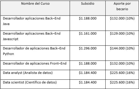 En términos generales, la Corporación cofinancia, en cada uno de estos cursos, entre el 84% y 90% del costo total, dependiendo del tema. Las postulaciones se abrirán entre los meses de julio y agosto y contarán con instancias de orientación transmitidas vÃa Youtube de Corfo, donde se entregará información sobre requisitos, formato, horarios y proceso de admisión.