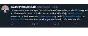 Ministro Prokurica: Sernageomin está investigando las causas del accidente que dejó a tres mineros atrapados en Tocopilla 17 junio, 2019