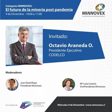 En esta oportunidad el expositor será Octavio Araneda, presidente ejecutivo de Codelco; evento vía zoom el 9 de diciembre de 10:00 a 11:00 hrs.