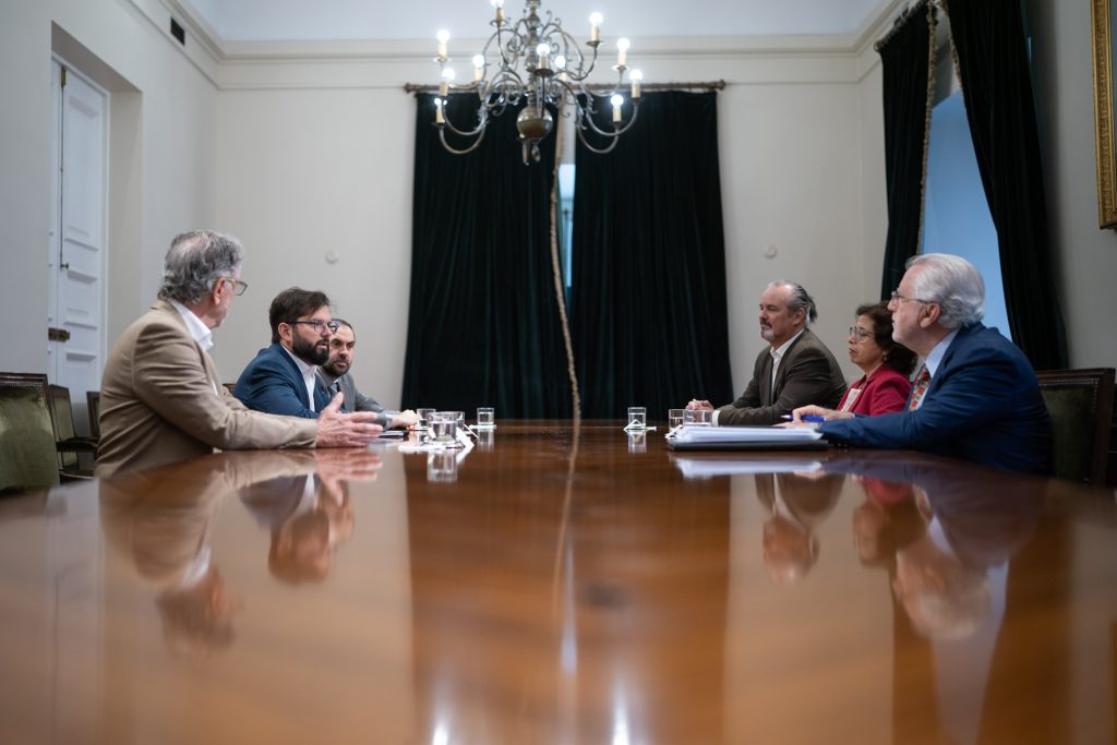 El Presidente de la República, Gabriel Boric sostuvo una reunión de trabajo con los ministros Nicolás Grau (Hacienda) y Aurora Williams (Minería); el biministro de Economía, Fomento y Turismo y Energía, Álvaro García; el presidente del directorio de Codelco, Máximo Pacheco; y el vicepresidente Ejecutivo de Corfo, José Miguel Benavente, para conocer los principales avances de la Estrategia Nacional del Litio.