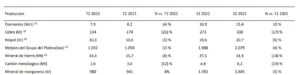 Al respecto, Duncan Wanblad, presidente ejecutivo de Anglo American, señaló: “Nuestro nivel de producción comenzó a remontar durante el segundo trimestre de 2022. El dinamismo operacional y nuestro énfasis en la resiliencia de los activos nos permitieron estar bien posicionados para un segundo semestre más vigoroso. La proyección de producción para el año completo se mantuvo invariable para los metales del grupo del platino, el cobre y el mineral de hierro; aumentó en el caso de los diamantes, y disminuyó en materia de carbón metalúrgico debido a los tiempos de aceleración de la producción del tajo largo. En términos generales, en el segundo semestre la producción bajó un 9% en comparación con el trimestre equivalente de 2021, principalmente por las menores leyes previstas, la disponibilidad de agua en Cobre, la aceleración de la producción del tajo largo Aquila de la unidad de Carbón Metalúrgico y los trabajos de mantenimiento planificados de la operación de mineral de hierro Minas-Rioâ€.