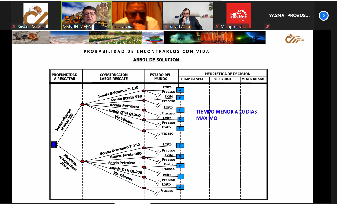Además, se refirió a la metodología de cálculo que se utilizó para estimar las probabilidades de encontrar con vida a los mineros, e indicó que luego de analizar las condiciones con un software de análisis de riesgos, el sistema arrojó que había solo un 0,0225% de probabilidades de encontrarlos con vida, y que dada la probabilidad casi nula se definió como “epopeyaâ€.