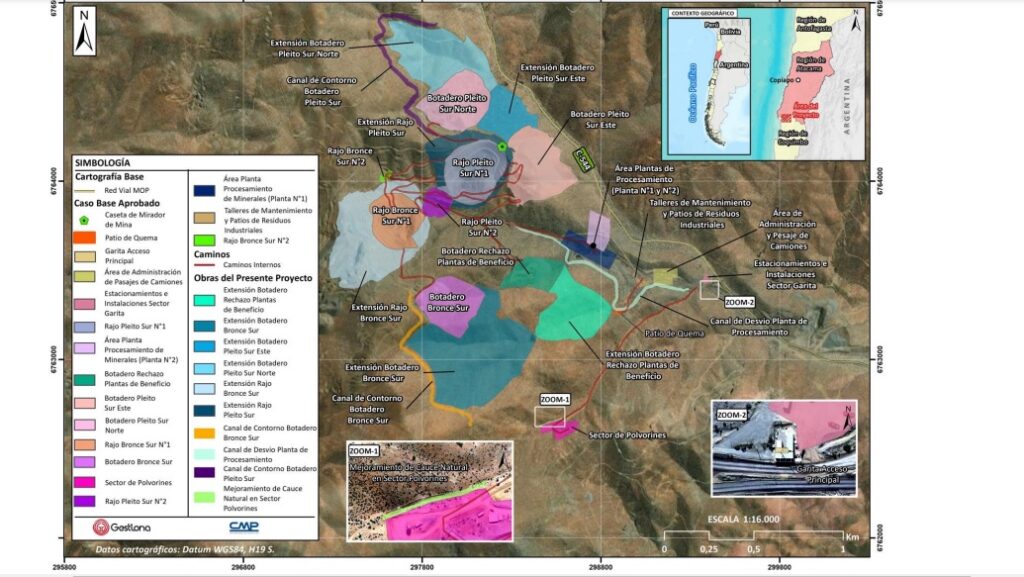 Esta modificación requiere ampliar la superficie intervenida y aprobada de los rajos Pleito Sur y Bronce Sur, de los botaderos de estériles Bronce Sur, Pleito Sur Norte, Pleito Sur Este y del botadero de rechazos de las plantas de procesamiento.