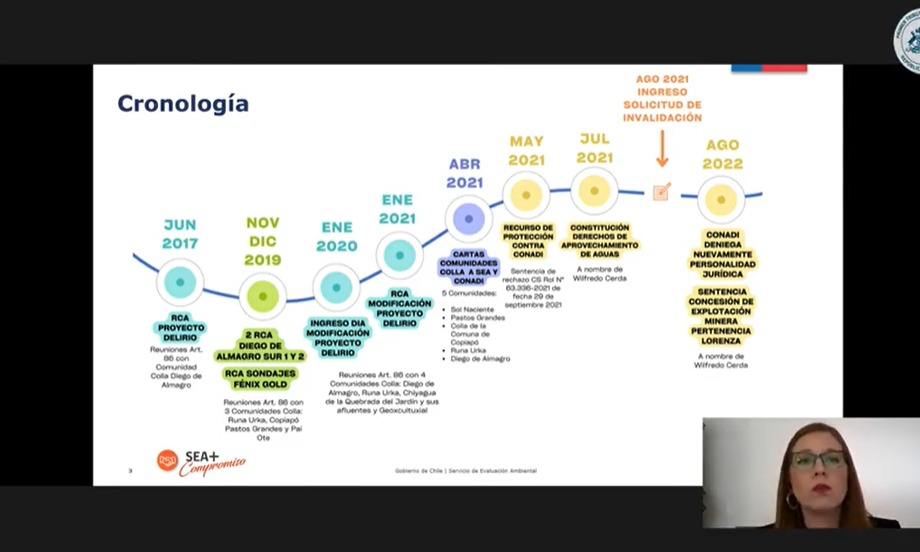 Sin embargo, el SEA en la audiencia de alegatos explicó que en la evaluación ambiental no se logró acreditar que no existen grupos humanos pertenecientes a los pueblos indígenas dentro del área de influencia del proyecto y no se acreditó la trashumancia minera que aduce el reclamante.