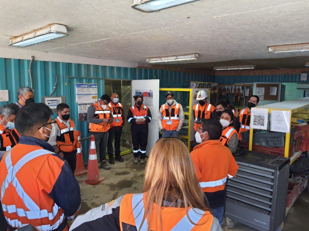 El grupo liderado por el área de Excelencia Operacional de la División Radomiro Tomic y Lindor Quiroga, gerente general de la División, conversaron con el personal del Ãrea de Chancado Secundario sobre el proceso de implementación y beneficios del proceso de mantenimiento, felicitando el nivel alcanzado en el manejo de las instalaciones y bodega.