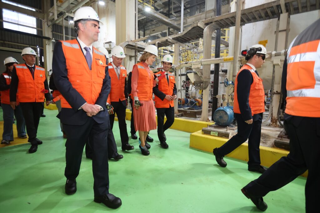 Durante su recorrido por las instalaciones, los monarcas conocieron la operación de la planta donde se produce carbonato e hidróxido de litio grado batería, clave para la electromovilidad y el almacenamiento de energía. La comitiva visitó una de las líneas de producción de carbonato de litio y el recinto de bodegaje, además del centro de monitoreo donde se acercaron a una trabajadora para conocer más sobre su labor.