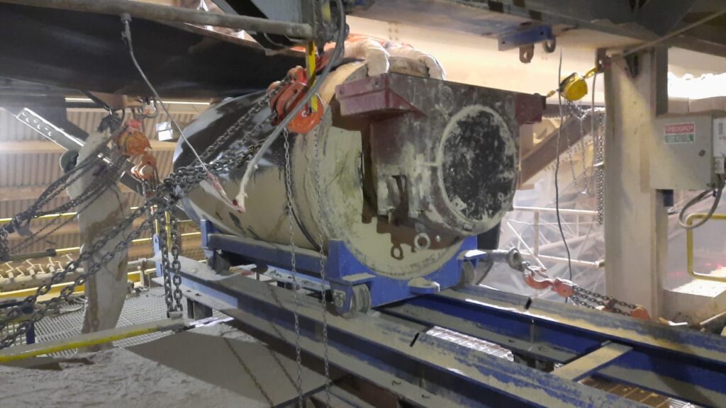 El contrato de Schwager en el área de apilamiento de la División Gabriela Mistral de Codelco realizó el cambio de la polea motriz de la correa de transporte de mineral 146 cv013, como parte del plan de mantención planificado en esa importante área operacional.